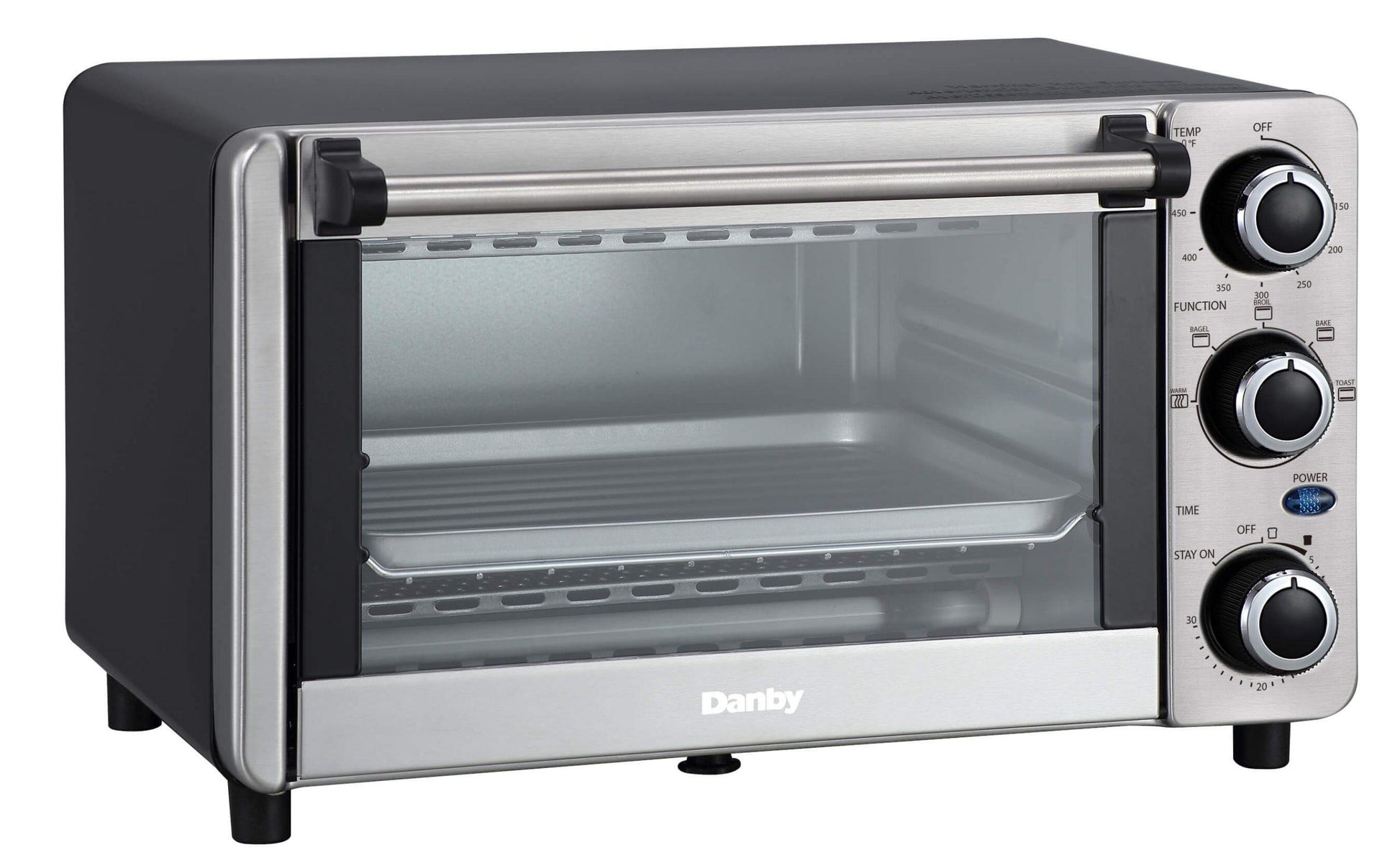 Découvrez le four grille-pain en acier inoxydable de 12 litres (0,4 pi³) de Danby ! Choisissez parmi 4 fonctions de cuisson préprogrammées : griller, cuire, rôtir et maintenir au chaud, pour une grande polyvalence ! Ce modèle est doté d'une puissance de 1 100 watts pour une cuisson rapide et homogène, d'une plage de température de 65 °C à 230 °C (150 °F à 450 °F), d'une minuterie de 30 minutes et, grâce à sa capacité, vous pouvez y faire cuire 4 tranches de pain ou une pizza de 23 cm (9 pouces). Une grille et une plaque de cuisson sont également incluses. Découvrez le plaisir de cuisiner à la maison avec ce magnifique nouveau four grille-pain de Danby !